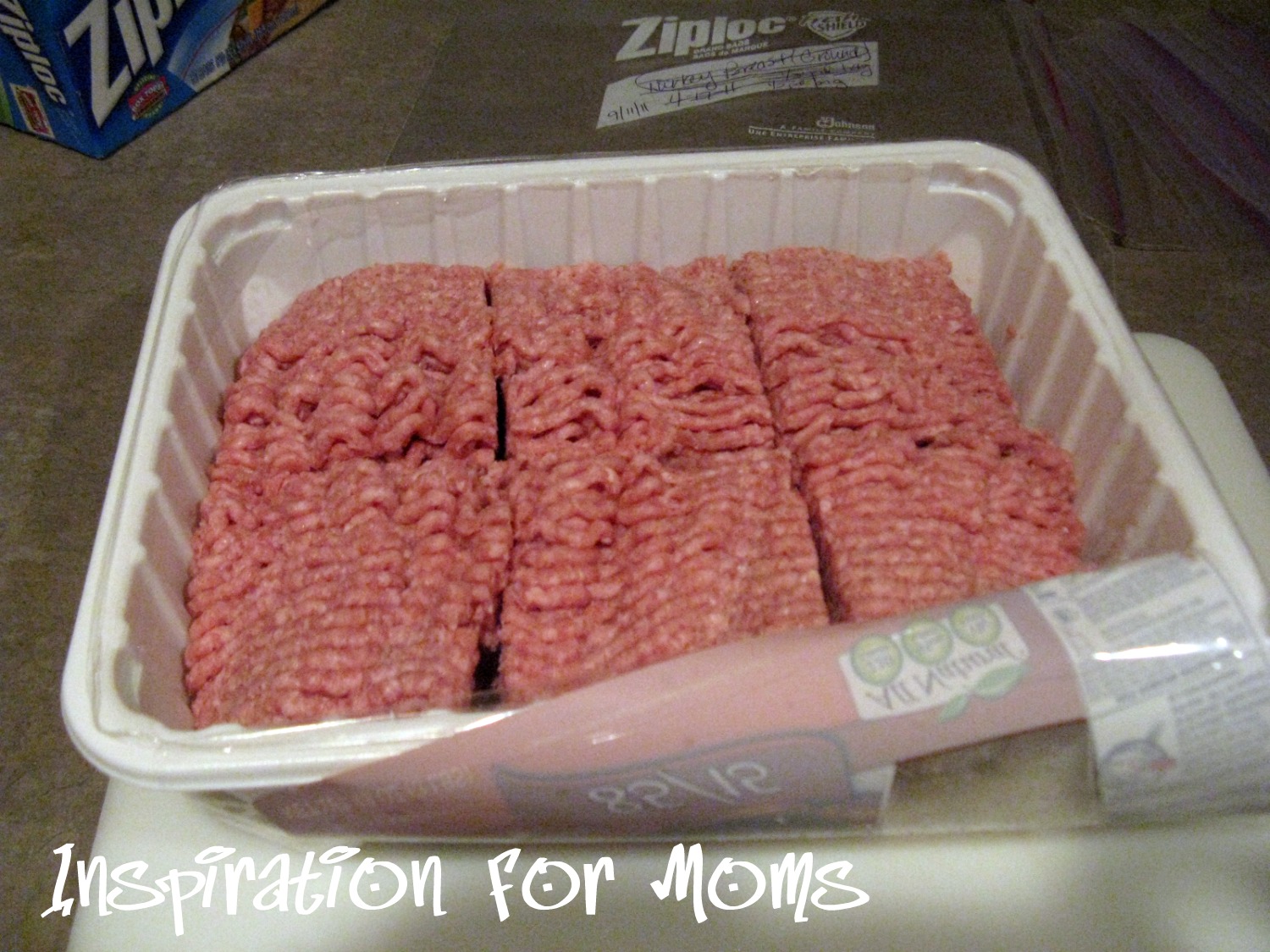 First, I divide my meat into 1/2 lbs. Since this tray is 3lbs of ground turkey, I would divide it into 6 equal sections.