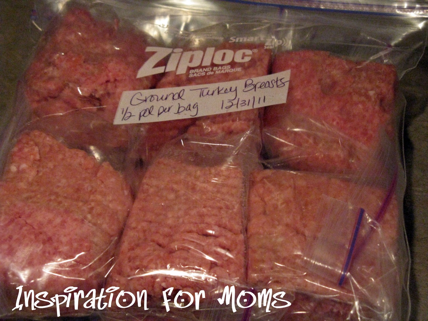 Ground Beef: 1/2 pound per sandwich bag (like the ground turkey above)