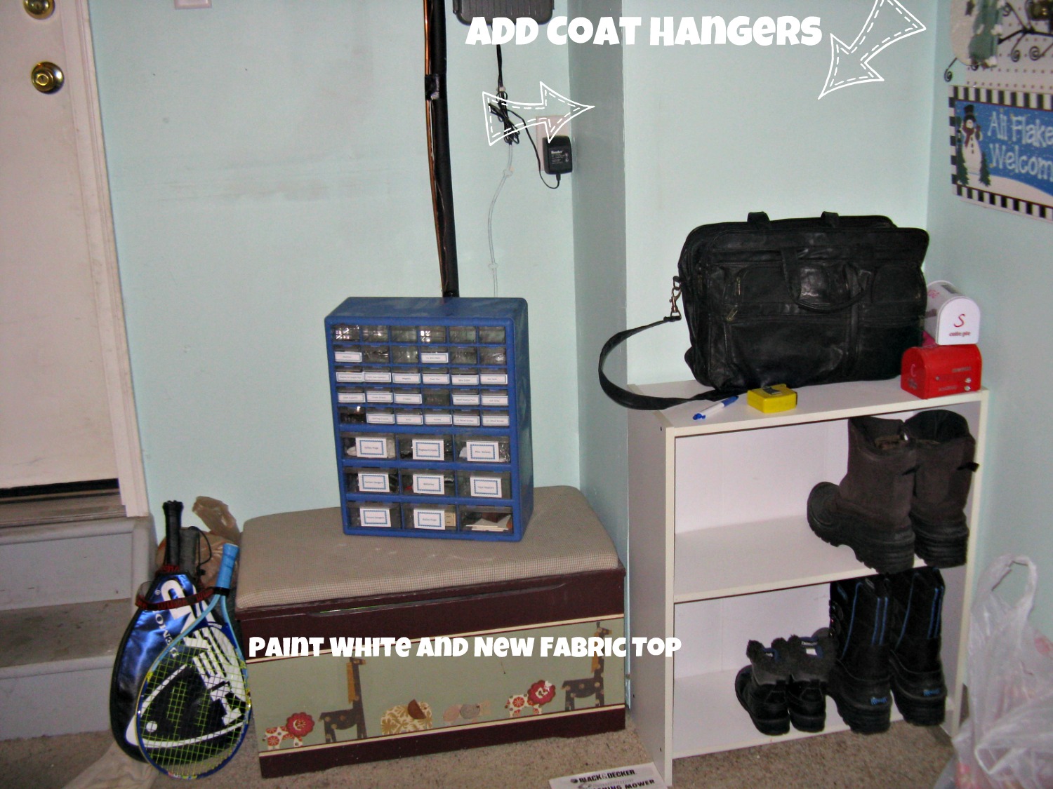 I also want to add some coat hangers for jackets and backpacks.