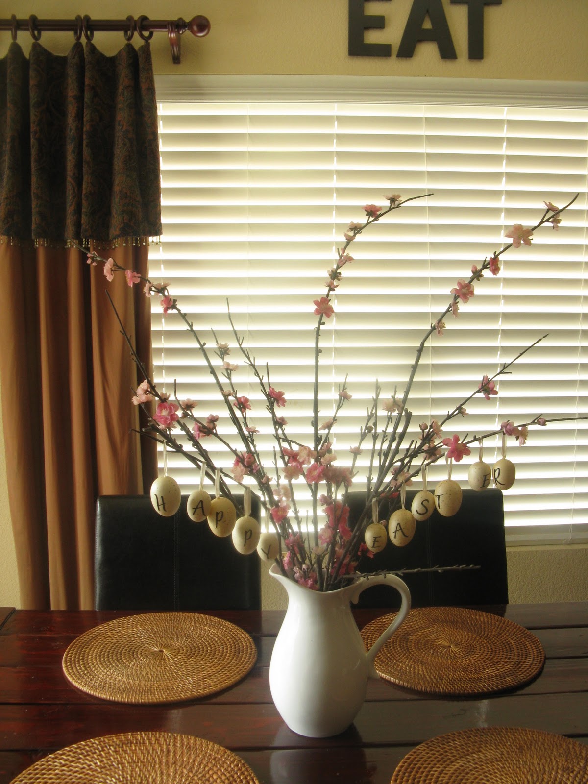 I knew I already had a few of the items, like the cherry blossoms and the black letters. So I decided to start collecting all the other items that I needed. I found the eggs at Jo-Ann fabrics on sale for 40% off and I had a coupon for an additional 25% off that…(Yippie!)…making them $4! I found a pitcher at Target for $13.