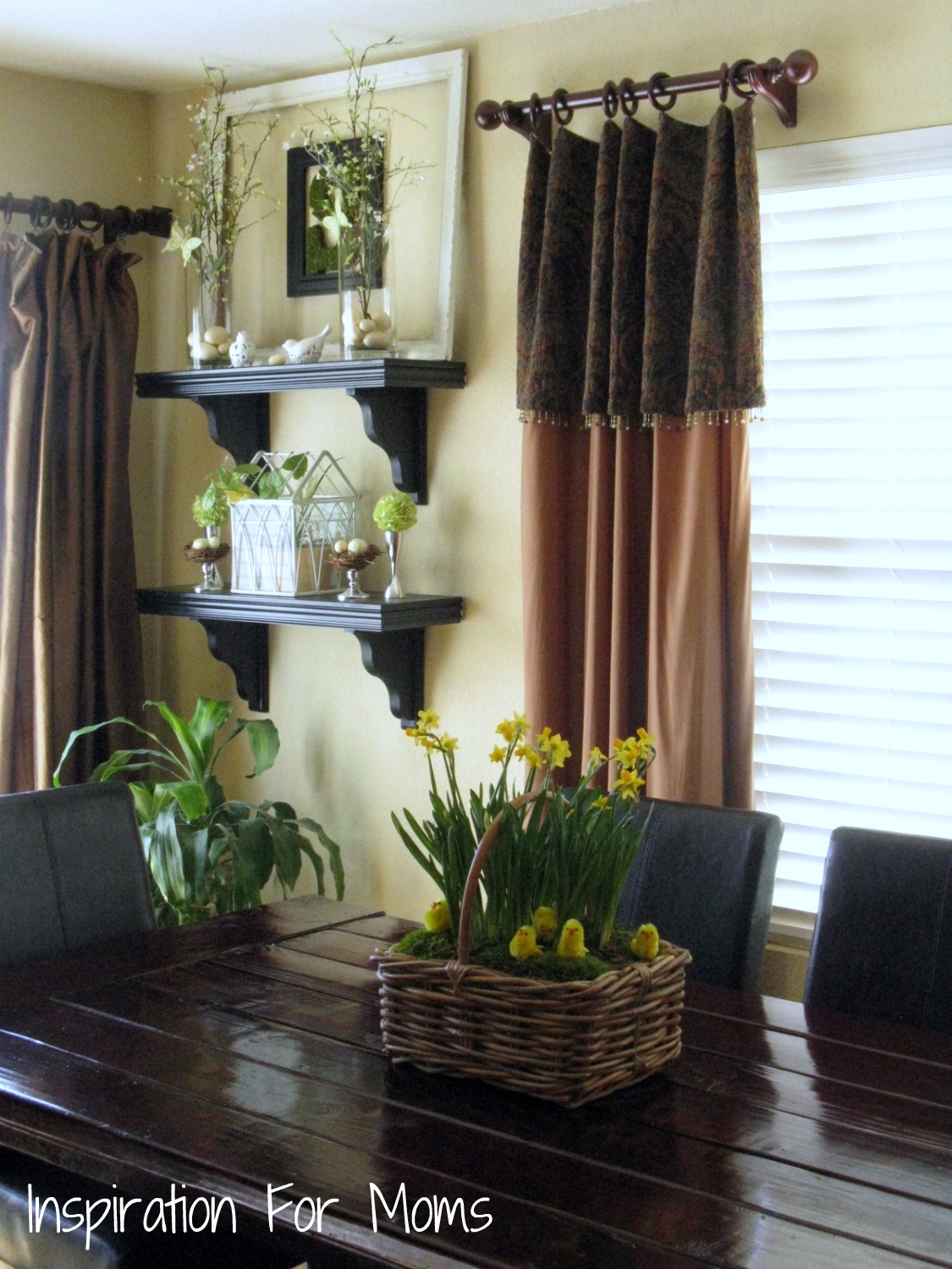 For fun, a view of my kitchen table with my Spring Vignette on the back wall.