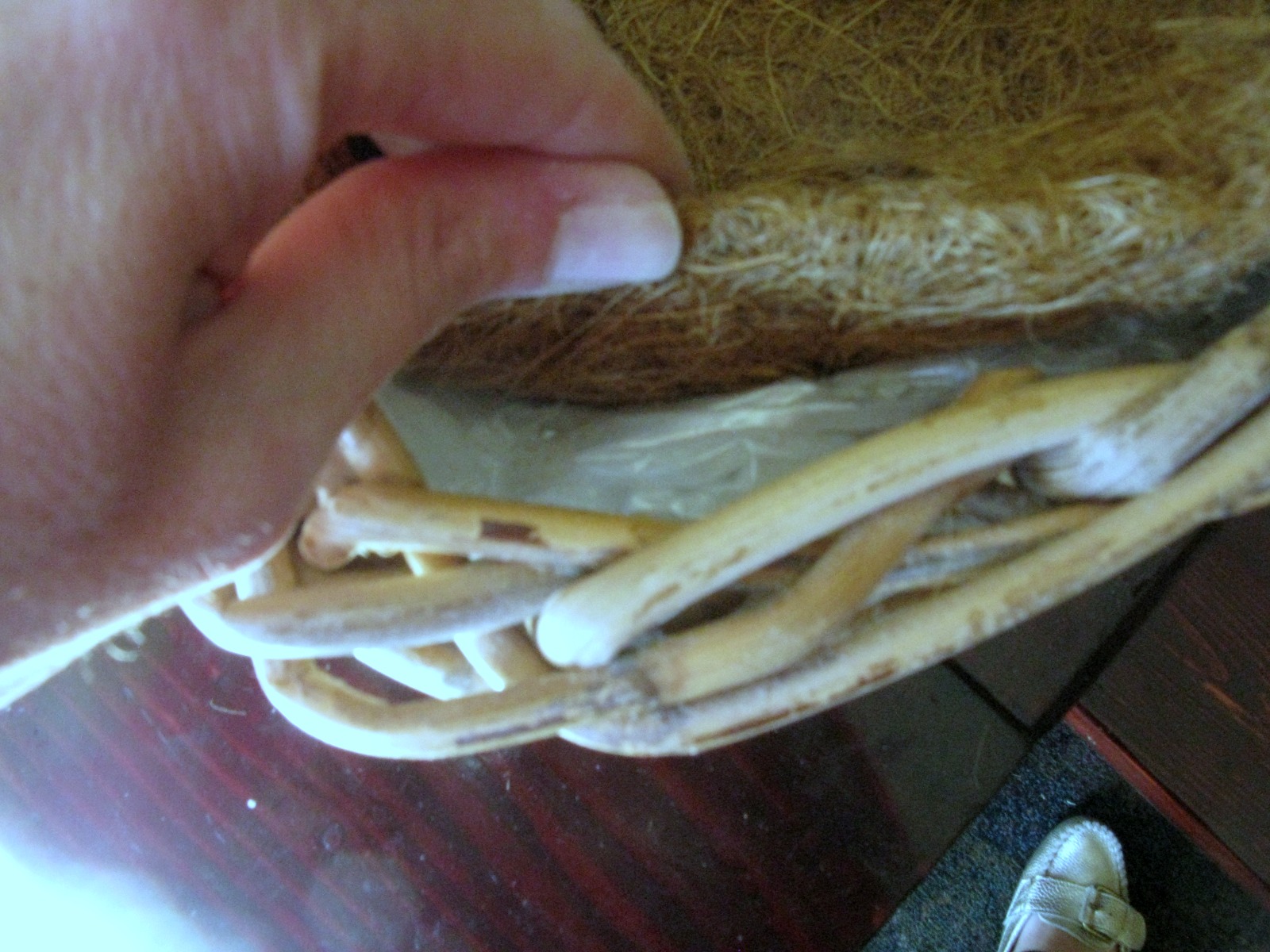 Now this step is optional. I already had a coconut fiber liner in my garage. I thought it would work nicely in the basket to keep all the soil from leaking out of the small weave holes. I also liked how it helps to hide the plastic liner. If you want to skip this step, go for it. 🙂