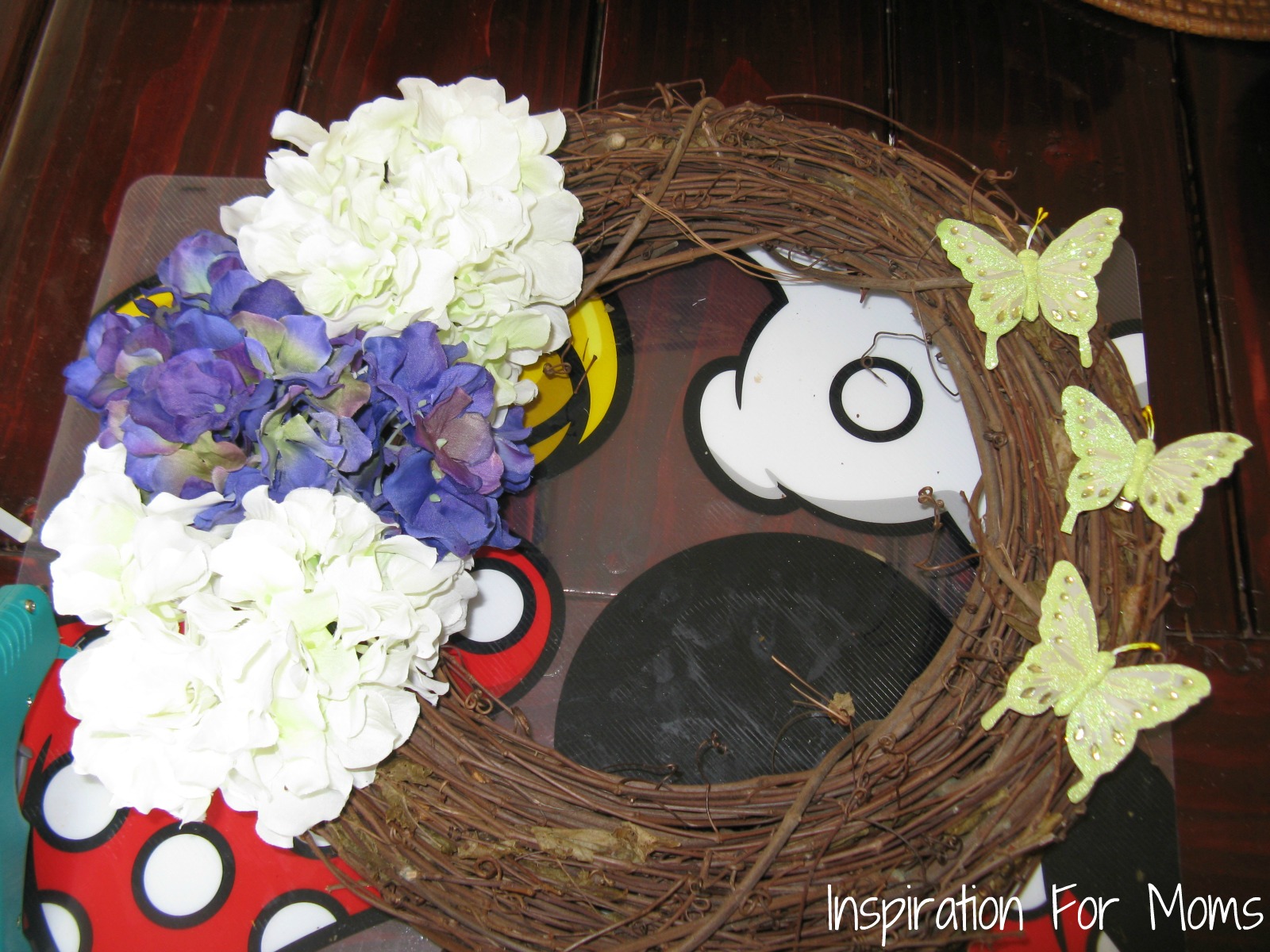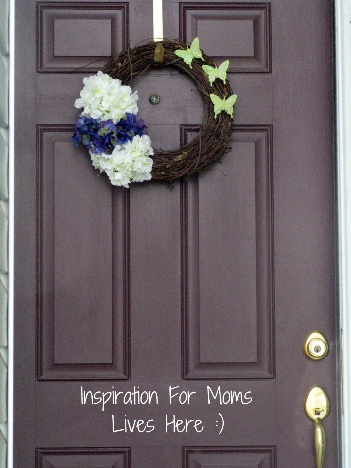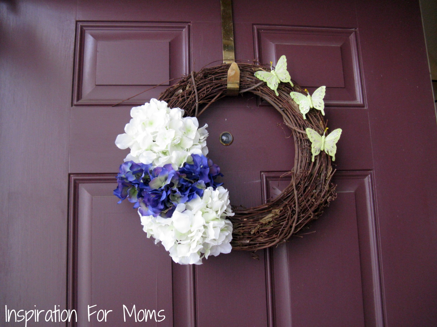 I love this wreath! Hydrangeas and butterflies are my absolute favs!