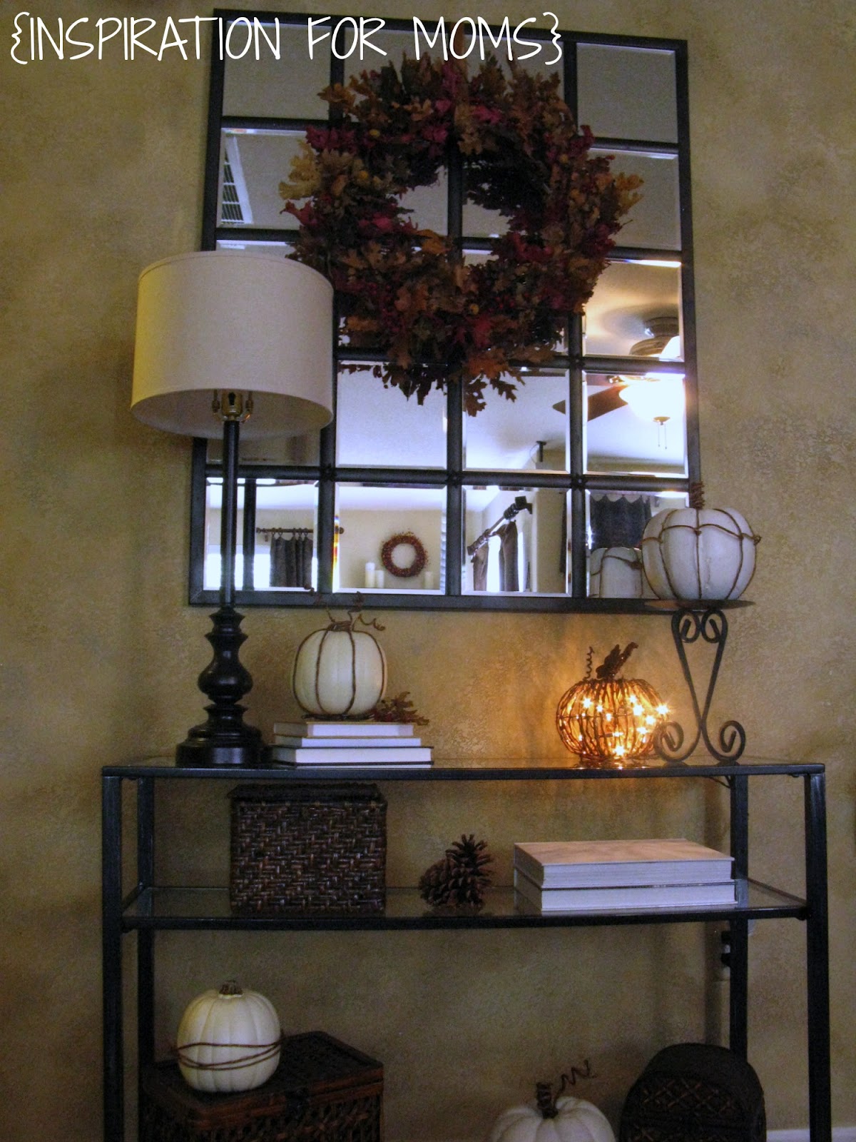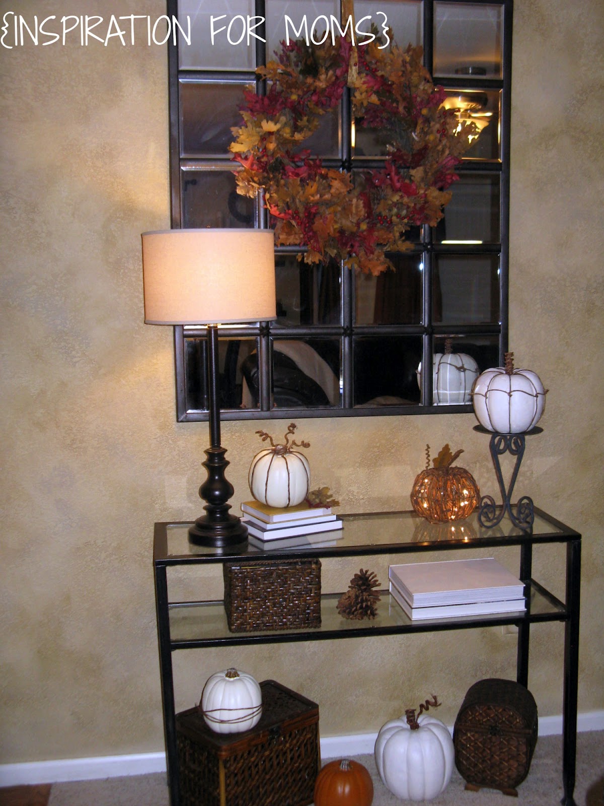 Wow, I have the same console table and pumpkins and I think I need to step up my game. Your vignette is adorable! Stopping in from the Inspired Room.