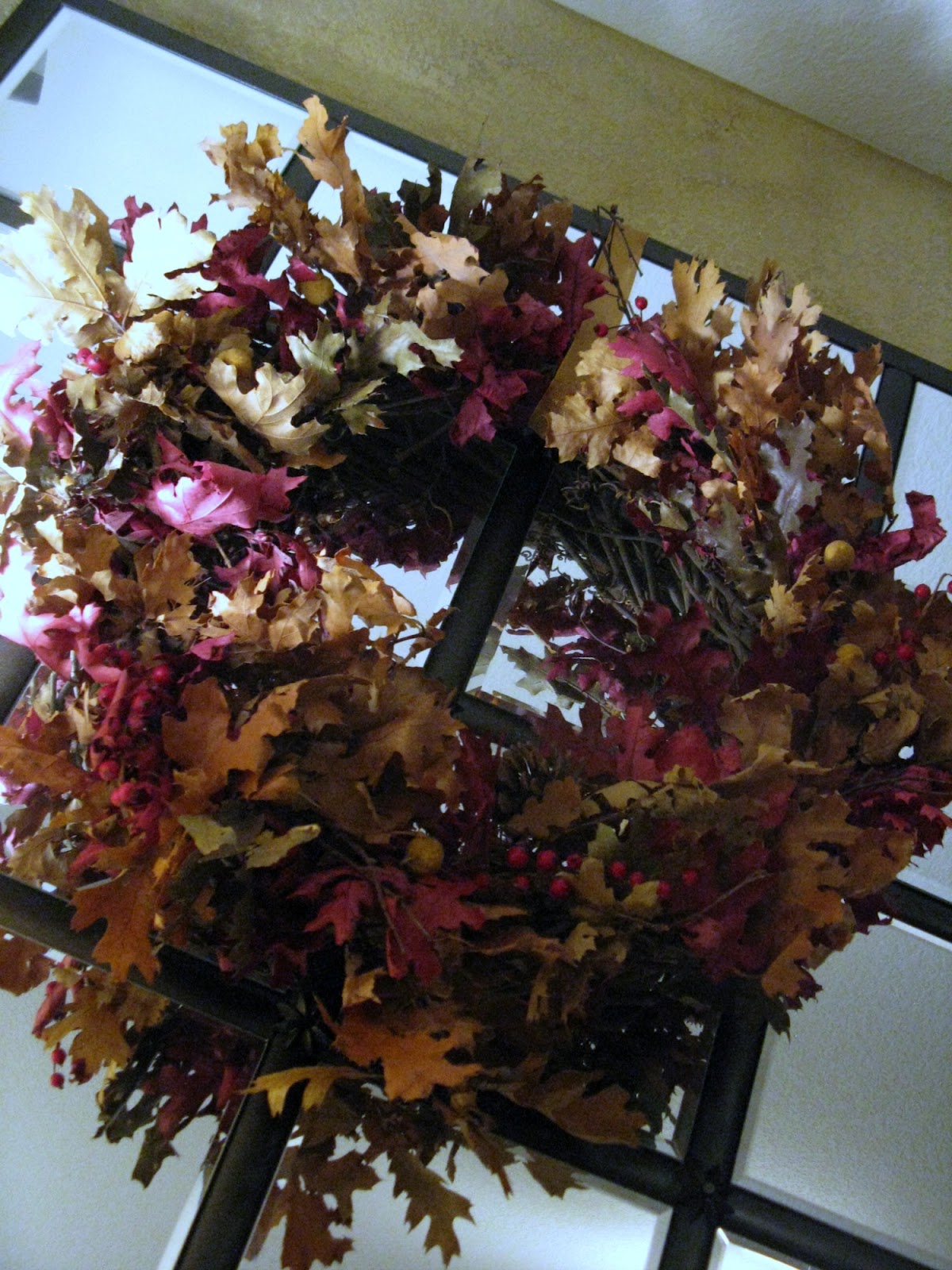 I grabbed a wreath that I bought at Pier 1 years ago to hang on my mirror.