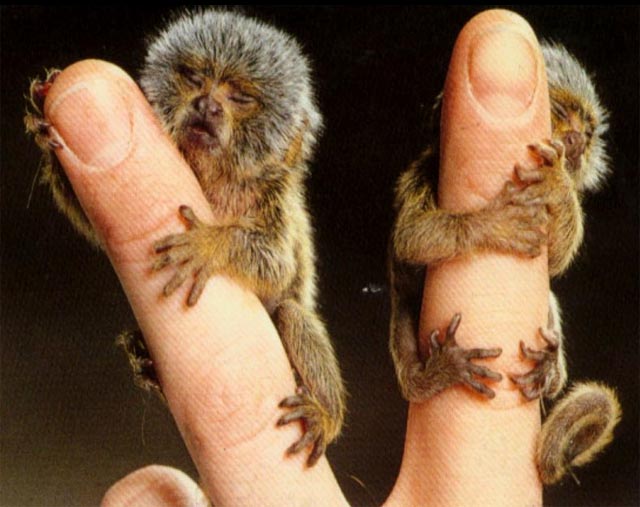 Fantastic Finger Monkey: Pymgy Marmoset is the worlds smallest monkey. They range in length from 5 to 6 inches. How cute is that?