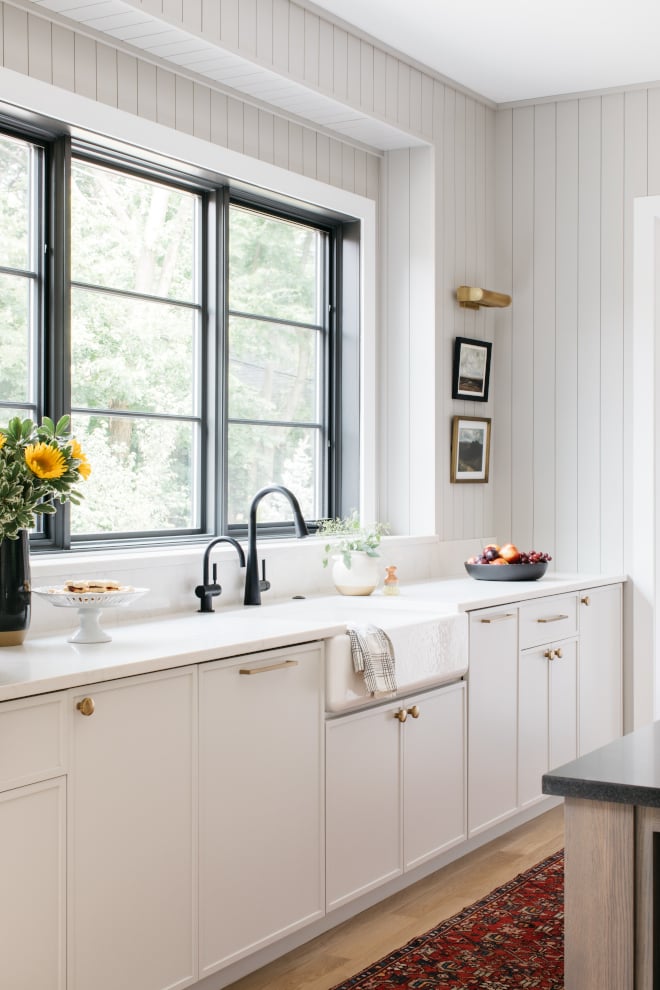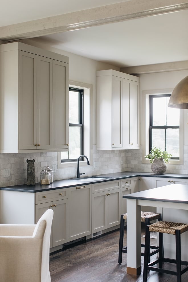 This color can offer a very light contrast from a brighter white as seen in the kitchen below.