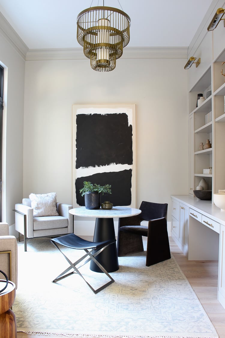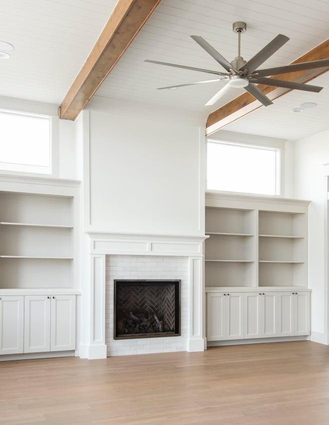 So when you’re looking for a whole house paint color, Balboa Mist is the perfect choice for using throughout the entire home. Love this color on the built-ins in this living room.
