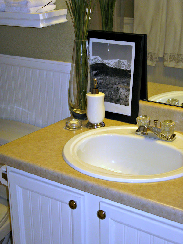 Love that bathroom redo. It looks exactely like my bathroom at home except for the counter. Wonder how I can fix that. It is a gold color. Ugh. Anyways heres to you. I live in northern colorado too. Right now too hot