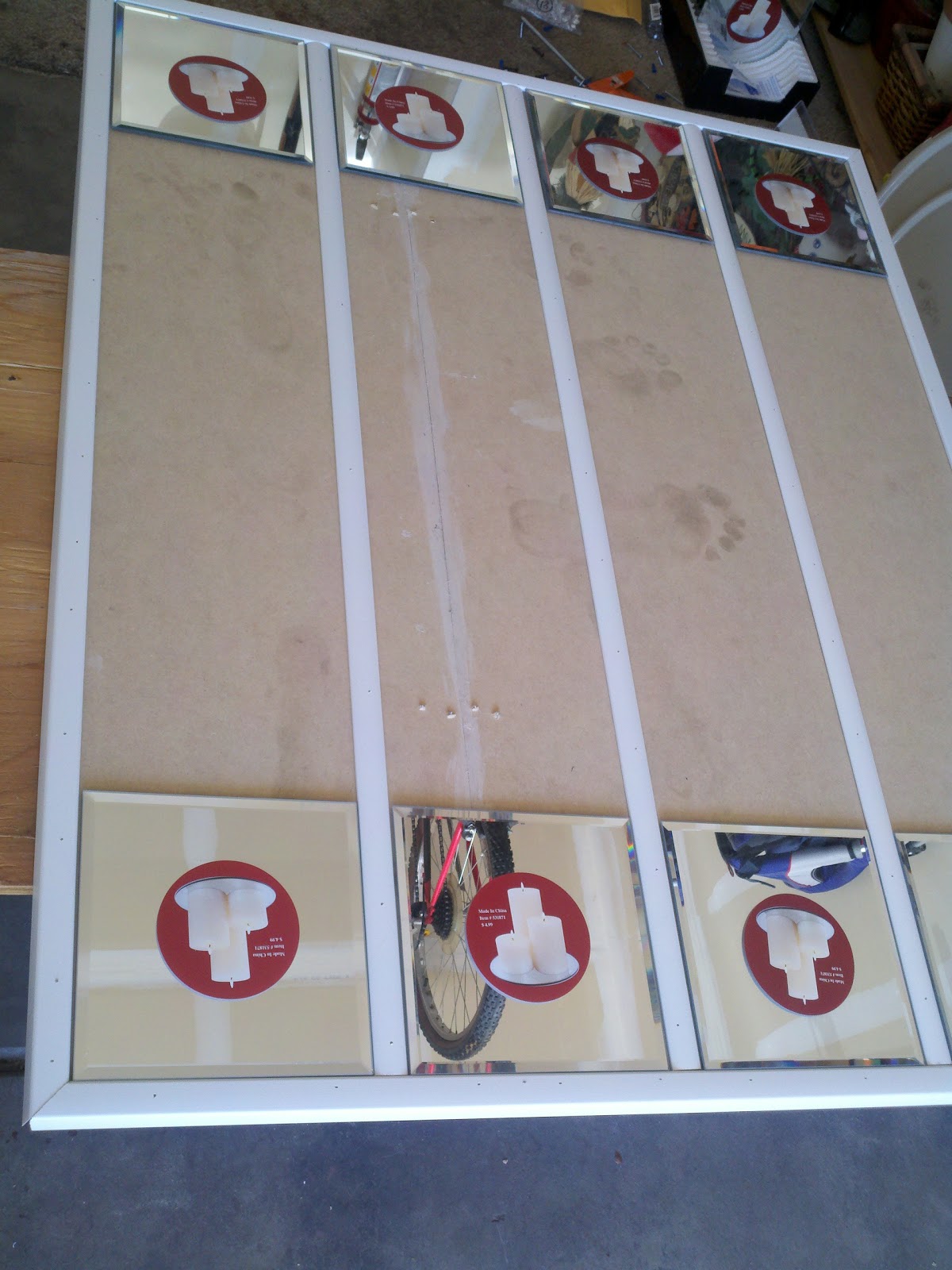 Next, I placed the long middle molding on like so…and placed mirrors in place to make sure everything would fit correctly…