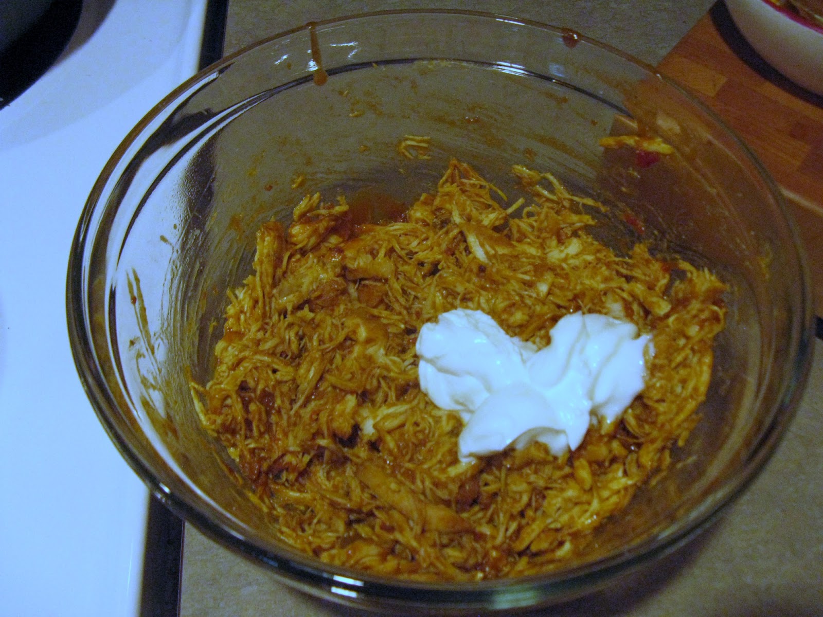 3) Cook on high for 4 hours. Shred chicken with two forks and stir in sour cream.