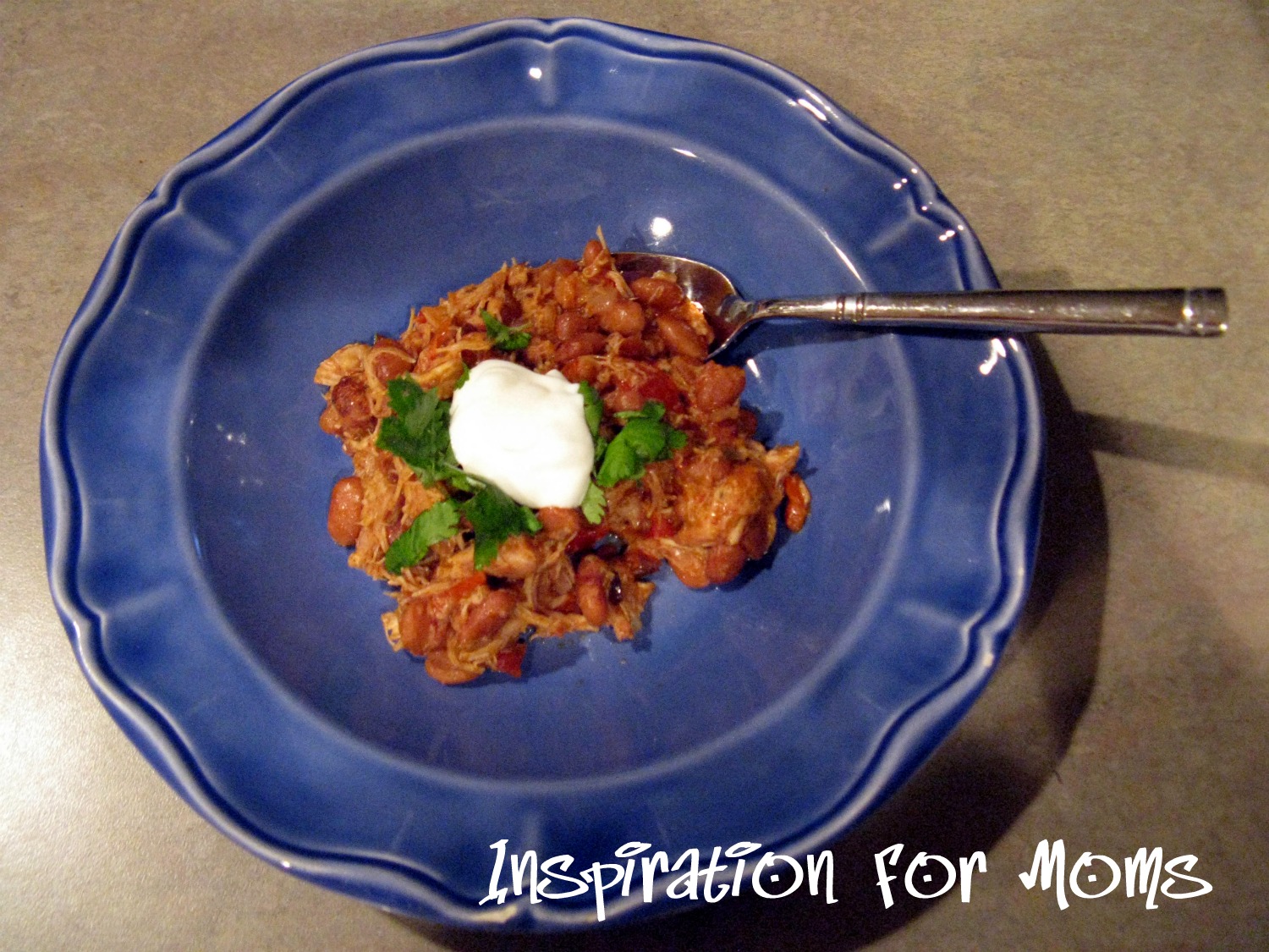 3) Remove chicken from stew; shred into large pieces and return to stew. Serve topped with sour cream and cilantro. Enjoy!